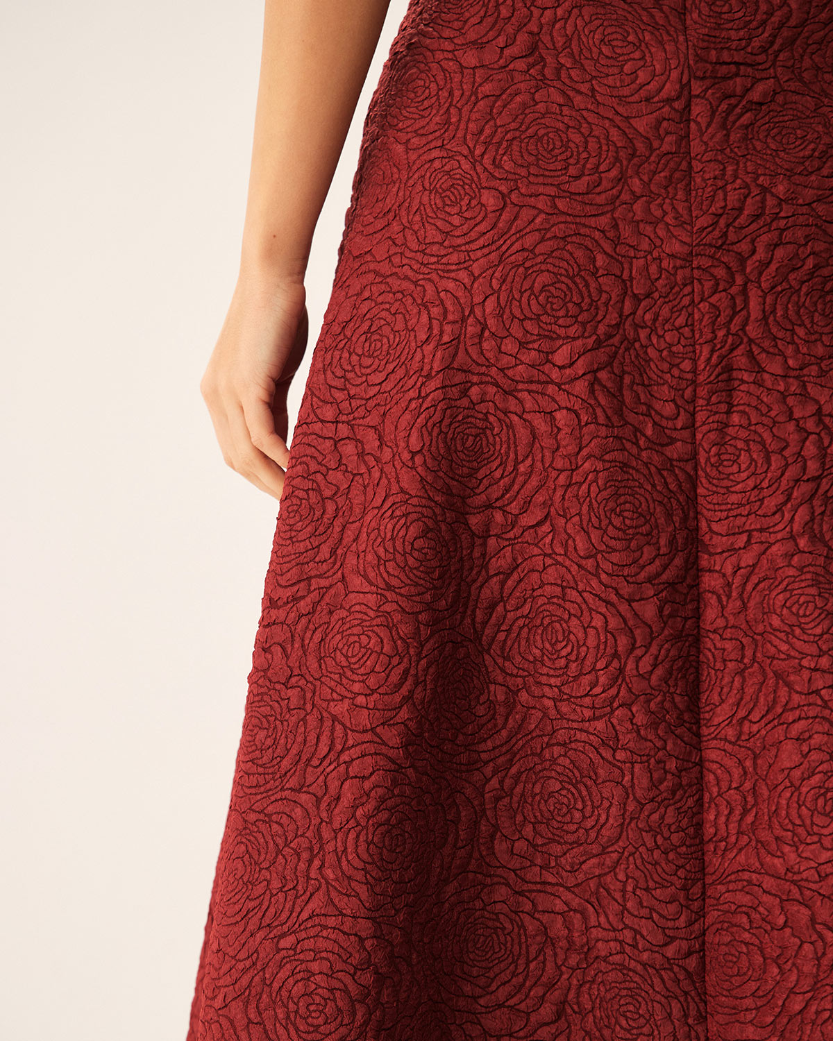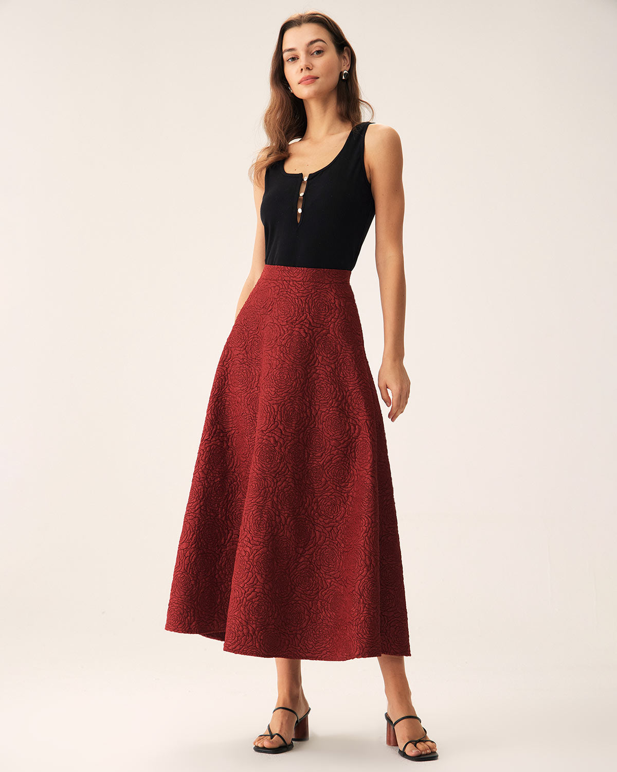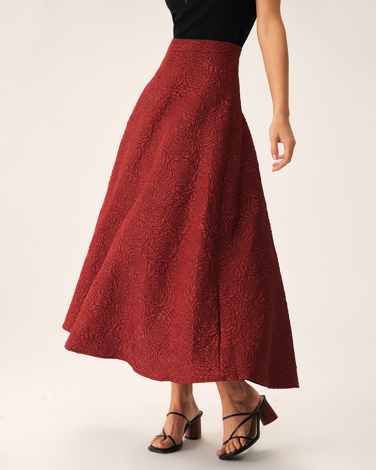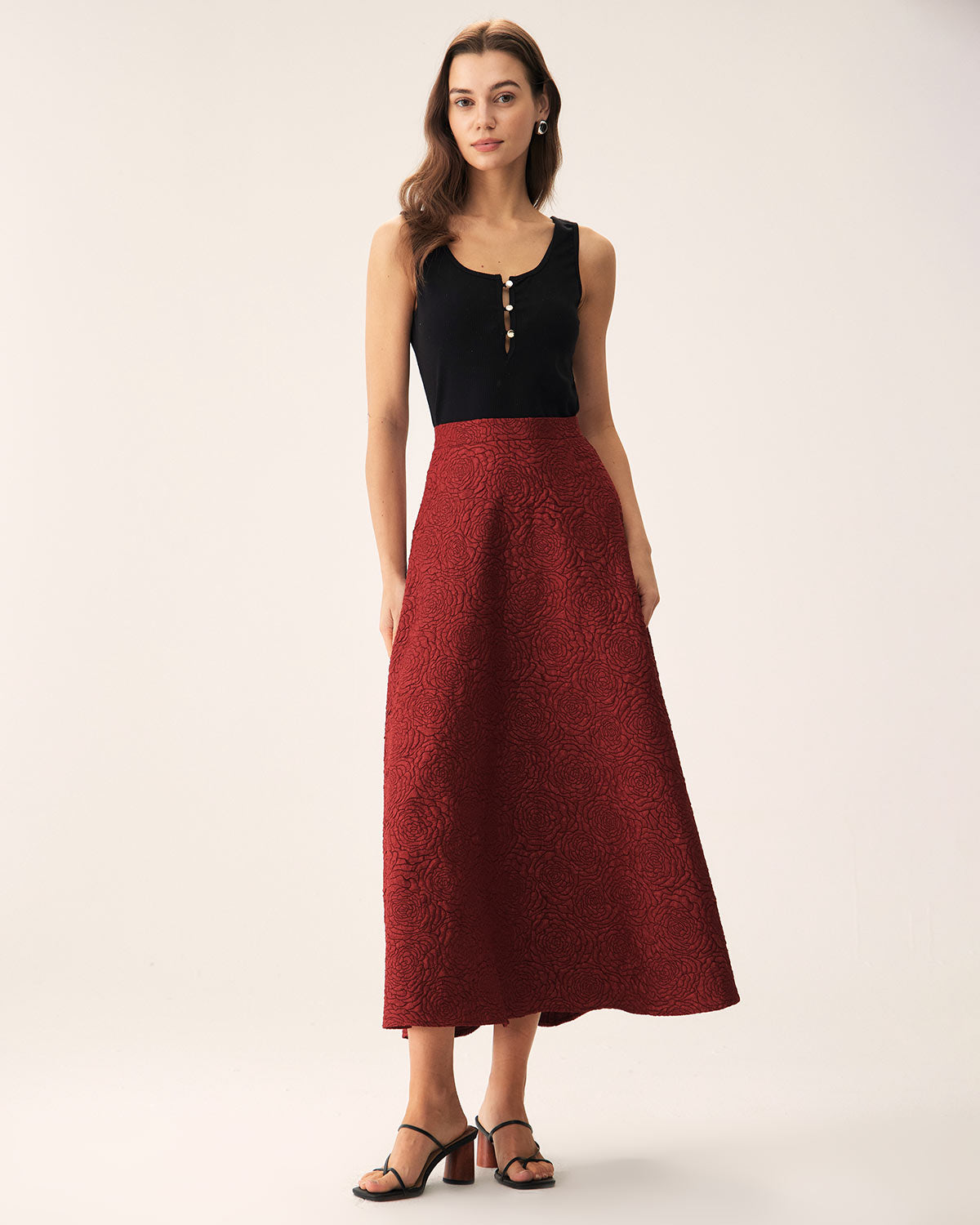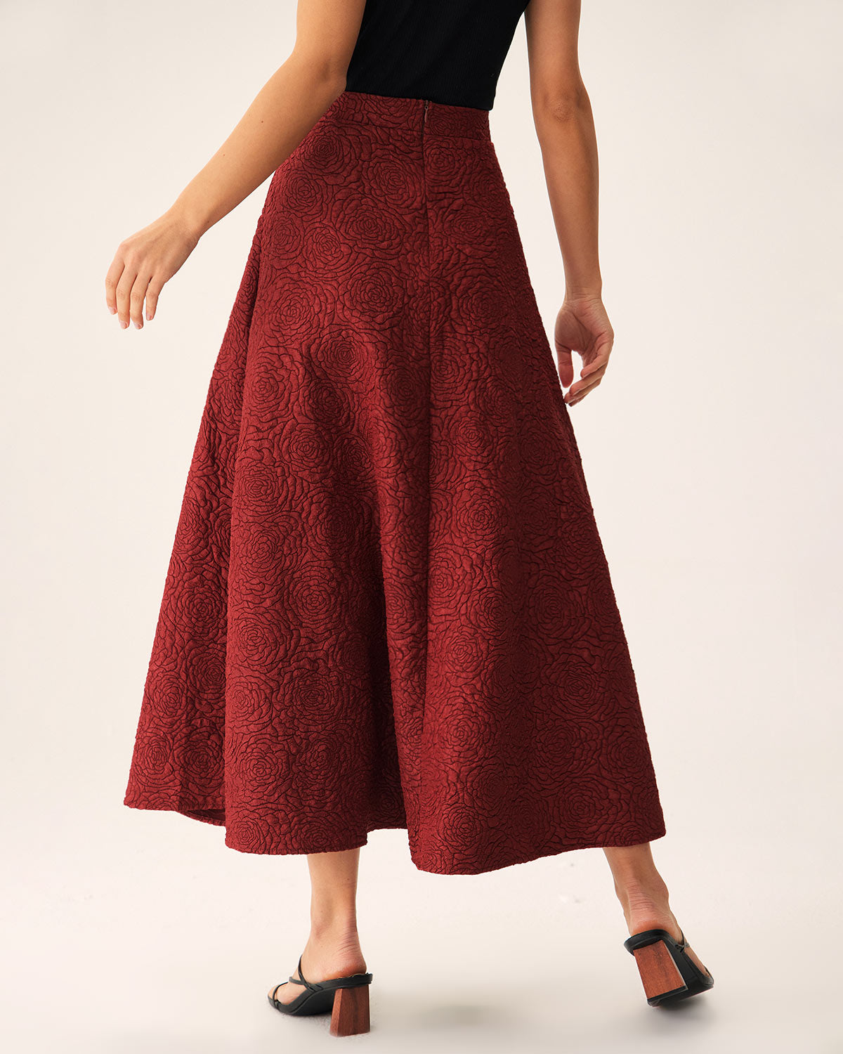 Red Jacquard A-line Midi Skirt