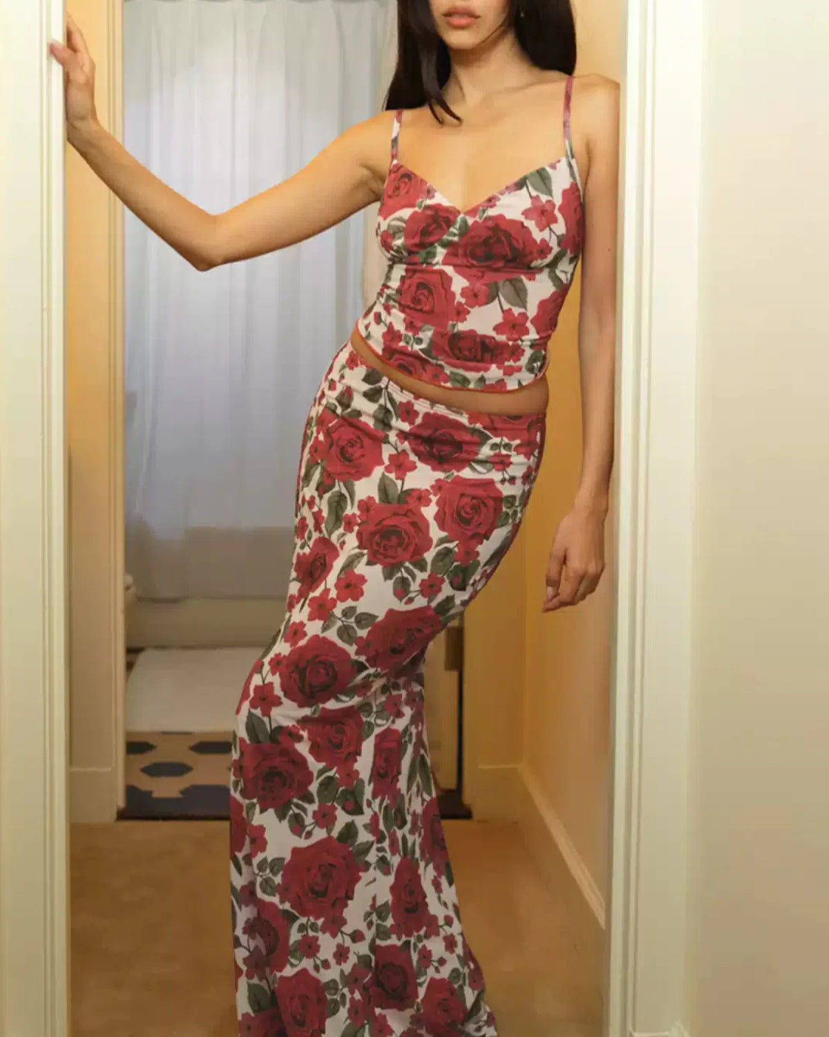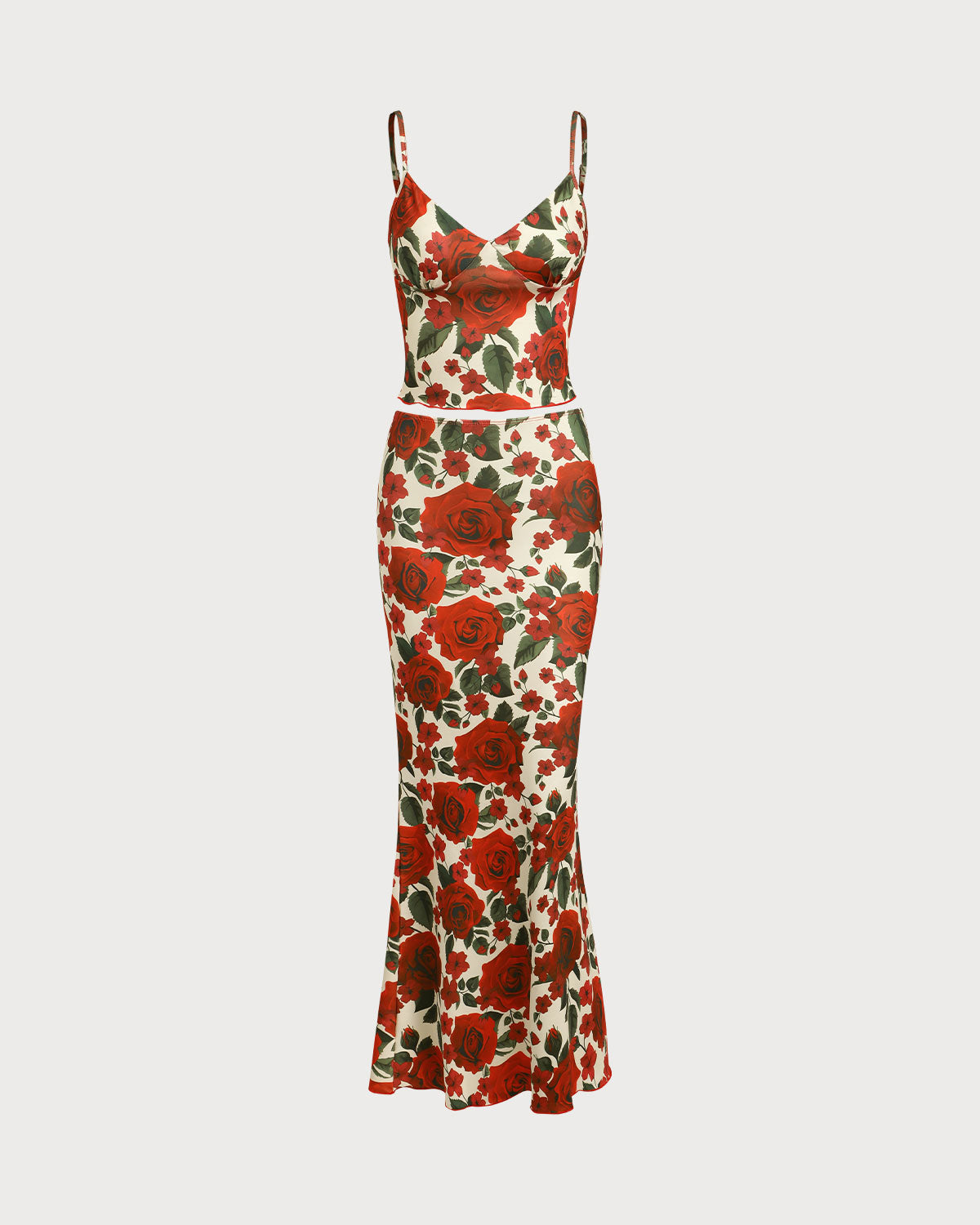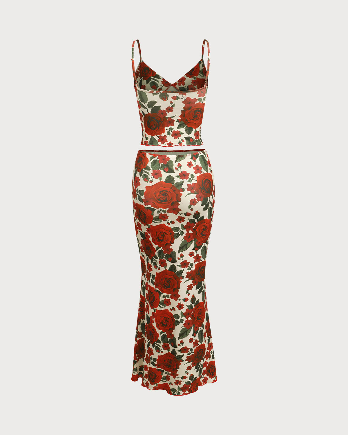 Red Floral Two Piece Skirt Set