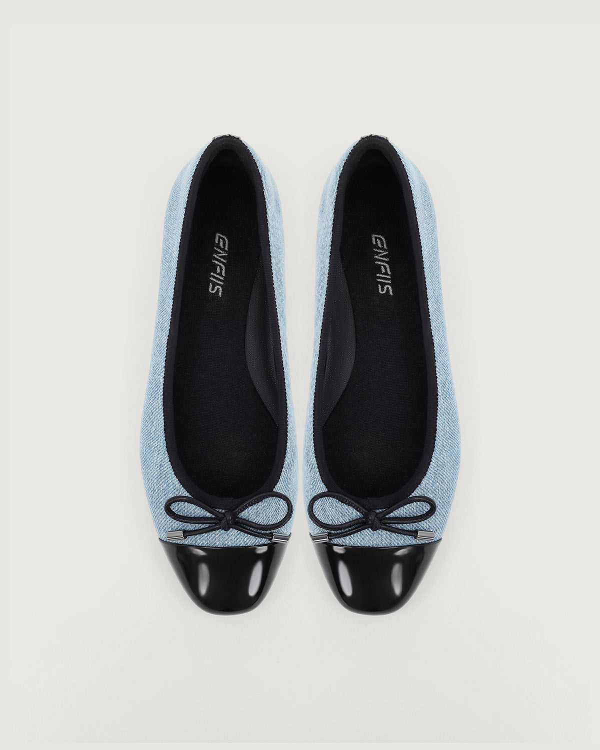 Enfiis Light Blue Washed Denim Cross-head Ballet Flats.