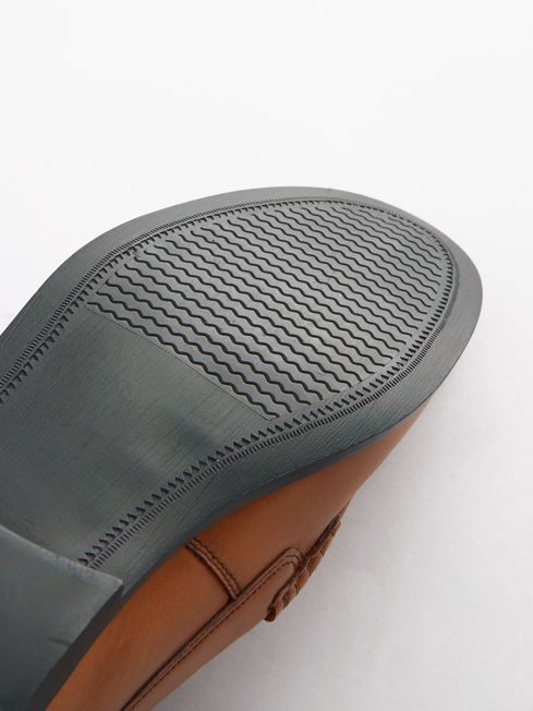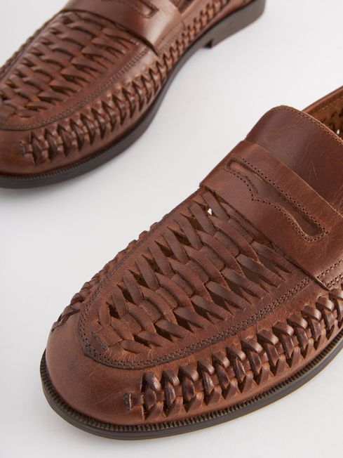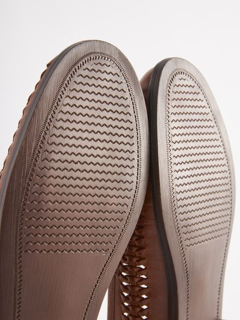 Tan Brown Leather Weave Loafers